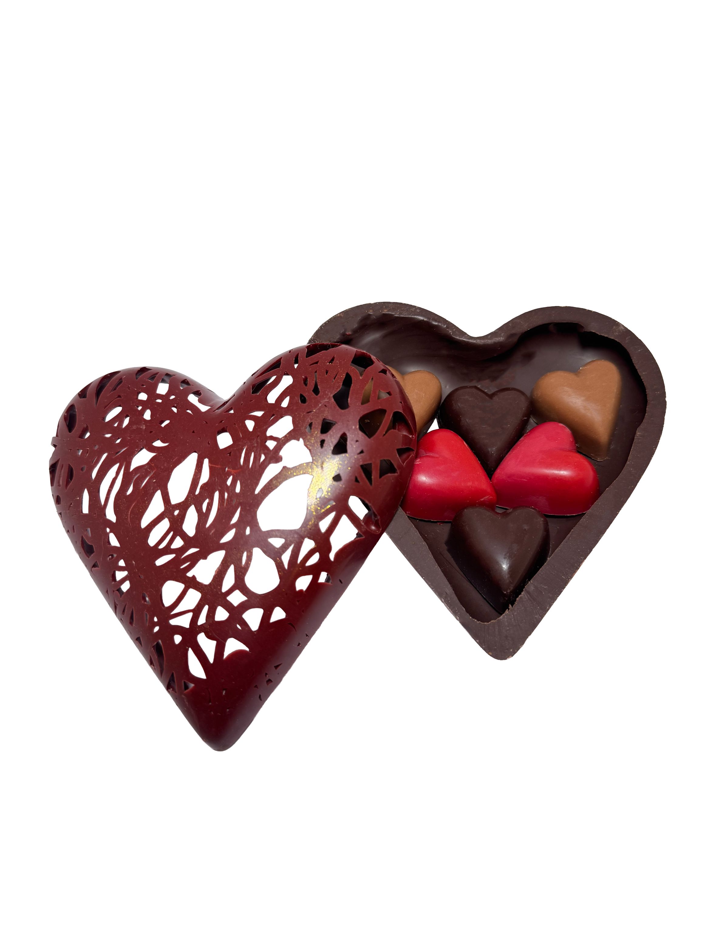 Bonbonnière garnie de 6 coeurs praliné